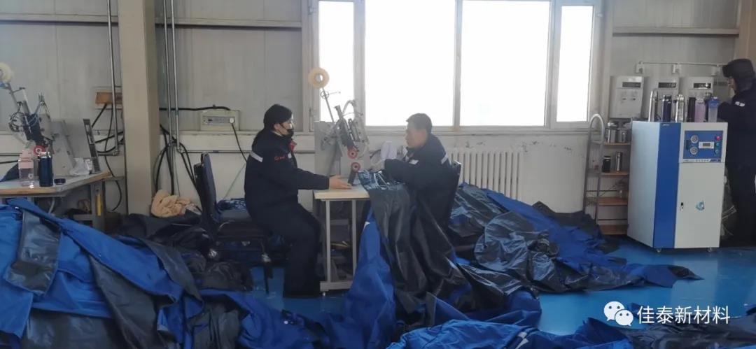 2020年歲末寒冬,北風(fēng)呼嘯在內(nèi)蒙烏蘭察布興和縣,室外溫度已接近零下二十度,雪花已在空中飛舞。然而,在佳泰公司內(nèi)蒙興和生產(chǎn)車間里,工人們的干勁依然熱情高漲,車間內(nèi)只聽見(jiàn)縫紉機(jī)飛速的旋轉(zhuǎn)聲,只看見(jiàn)高頻機(jī)前匆匆行走熱合的身影……每個(gè)人都兢兢業(yè)業(yè)完成各項(xiàng)生產(chǎn)工序,勤勞樸實(shí)的特質(zhì)在此時(shí)顯得淋漓盡致。